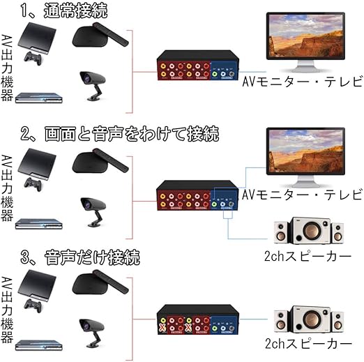 本製品は、STB/ DVDプレーヤーと他のAVインターフェースからプロジェクター/テレビ/モニターや他のAVインターフェイス機器への出力を使用することができる