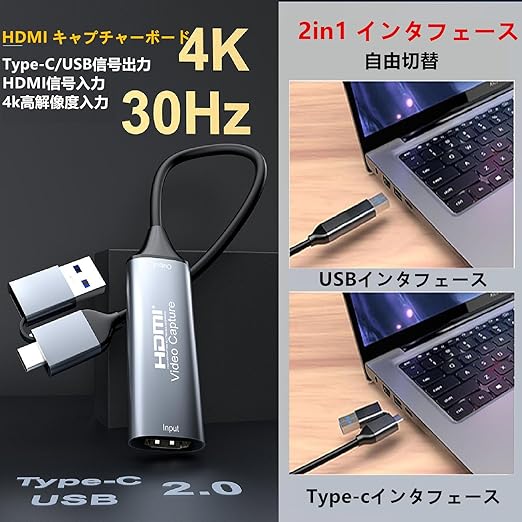 SensaBliss HDMI キャプチャーボード 4K 30Hz HDMI USB 2.0/Type C 2in1 ビデオキャプチャー 低遅延 USB 変換 小型軽量 ゲーム実況生配信/ビデオ録画/ライブ会議に/画面共有/ライブ配信用 Windows/Mac OS/Androidに適用 キャプチャー キャプチャー video capture/OBS/VLC/Amcap a | PCBASE