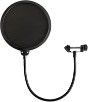 マイクポップフィルター 反射フィルター 録音品質を向上 直径15cm ボーカル録音に最適 自宅録音 録音とストリーミング ライブ放送 自宅録音 二重構造 クリアな録音 360度調整可能 丸型 ブラック a