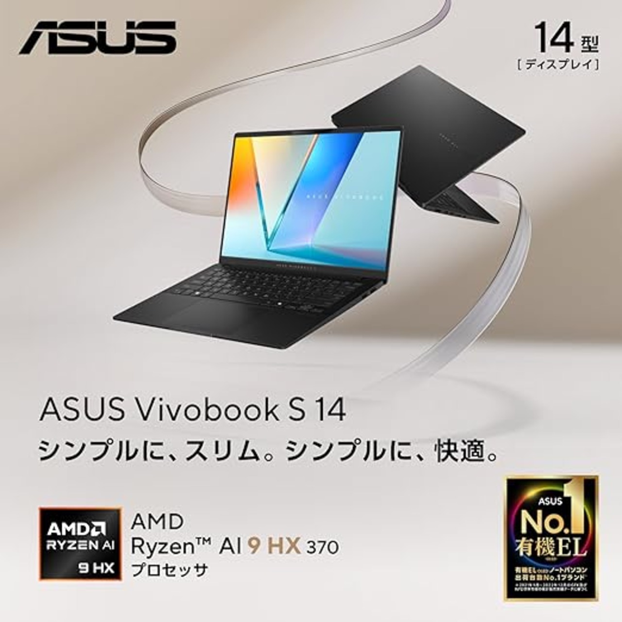 ASUS ノートパソコン Vivobook S 14 M5406WA 14型 AMD Ryzen AI 9 HX 370 メモリ32GB SSD 1TB Windows 11 重量約1.3kg Wi-Fi 6E Type-C給電対応 有機ELパネル搭載 カードリーダー Copilotキー搭載 AI PC M5406WA-AI9321W a