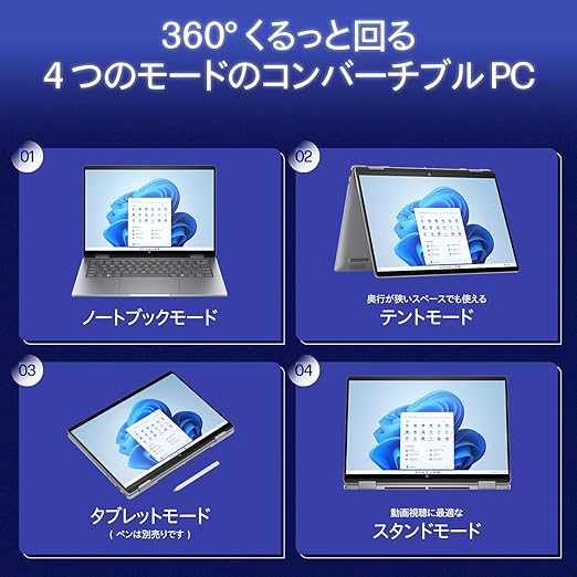 【Amazon.co.jp限定】HP ノートパソコン Envy x360 14-fc 14インチ 2in1コンバーチブル WUXGA IPSタッチディスプレイ Core Ultra 5 プロセッサー 125U 16GBメモリ 512GB SSD Windows11 Home Windows Copilotキー搭載 AIPC マカフィーリブセーフ 1年版付き Microsoft Office搭載 a