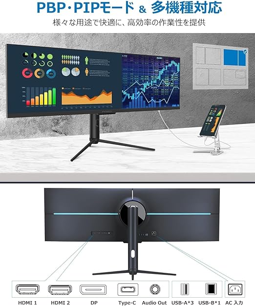 【32:9スーパーウルトラワイドモニター&PIP/PBP】 Innocnのウルトラワイドディスプレイはアスペクト比が32:9で、一般的な16:9ディスプレイより横方向に一倍長く、広い作業空間と視野を確保できることで、多くの情報をまとめて映し出し、快適な作業空間を実現できます。更にPIP/PBP機能の搭載により、複数の入力信号源を均等に画面上に並べて分割して表示することで、株式投資家や映像編集者やデータアナリスト等の専門家に、マルチタスクの仕事効率を上げるスムーズな作業環境を提供します。上位機種は