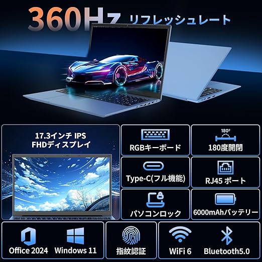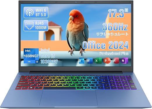 17.3インチ ノートパソコン Office 2024搭載 core i5-1038NG7(N150より速い)/360hzリフレッシュレート/6000mAhバッテリ パソコン16GBメモリ 960GB SSD/Type-C/RJ45/USB3.1/テンキー/バックライト/日本語キーボードフィルム付きBT5.0 WIFI6/動画視聴・在宅勤務 (i5-1038NG7, 16G+960G SSD) a