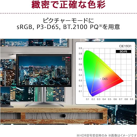 【深い黒を再現】IPS Black IPSに黒を強化した「IPS Black」を採用。黒の表現力を高め、コントラスト比が2000:1に向上。より暗部諧調の再現性が高まることで、4Kの画像をさらに自然に表示します。