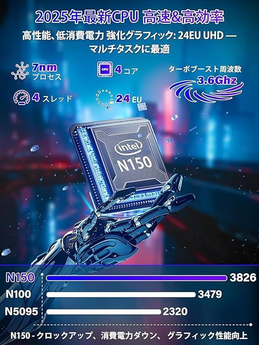 【NVMe高速SSD・優れた放熱性能】4コア4スレッド・最大3.6GHzターボブーストを実現。前世代N100比で約