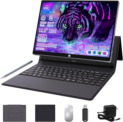 【3Kタッチスクリーン搭載 OFFICE 2024】13.9型 2in1ノートパソコン/日本語配列キーボード付き/インテル N95ノートpc 静音安定CPU/16GBメモリ DDR4/軽量1.21kg/Win11pro/前後カメラ・Wi-Fi2.4G/5G・BT5.0・Type-C(充電・データ)(13.9インチ・3K・N95, 16GB+512GB) a