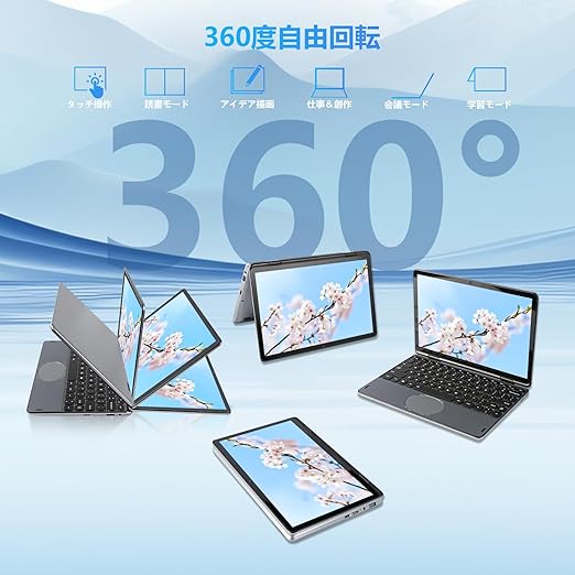 2in1 ノートパソコン ピンク10.95インチタッチパネル YOGA360°回転可能 n100 ノートpc 軽量/1920x1200 100%sRGB/16GB DDR4/わずか942g 200万web カメラ画素/bluetooth 4.2/Type-C(データ転送専用)/初期設定不要 Windows 11 Pro搭載 日本語配列キーボードカバー付き (グレー, 16GB+512GB) a