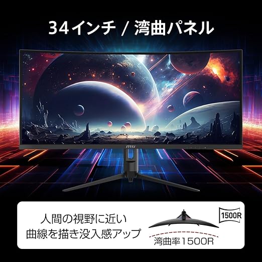 【Amazon.co.jp限定】MSI 湾曲ゲーミングモニター MAG 342CQR E2 34インチ/UWQHD/VAパネル/180Hz/ウルトラワイド/1ms/HDR対応/HDMI/DP/Adaptive-Sync/AIビジョン搭載/チルト・高さ調整/メーカー3年保証 a
