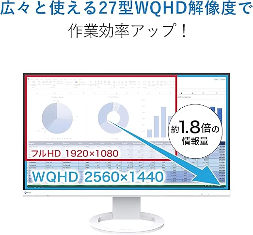 27.0型WQHD(2560×1440)IPSパネル搭載、フルHDの約1.8倍の情報量を表示可能