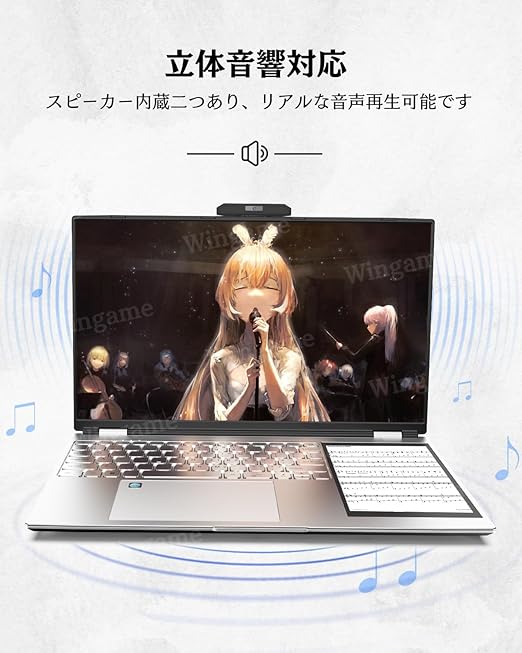 「純正品2025モデル」Wingame ノートパソコン デュアルディスプレイ(15.6インチFHD+7インチタッチサブディスプレイ) 12世代 intel N100 マグネット式WEBカメラ(zoom対応)/バックライト付きキーボード/4800MhzDDR4/512GBSSD/Type-C/USB 3.0/mini-HDMI/指紋認証/MS Office 2019/Win11Pro a