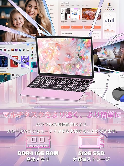 2in1ノートパソコン タッチスクリーン 10.95インチ タッチパネル 軽量ノートpc FHD 360°回転可能【Win11 Pro&MS Office 2019付き】わずか0.94kg Alder Lake N100(最大3.4GHz)/指紋認証/Type-C/Bluetooth/WIFI/バックライト付きlaptop/ビジネス・初心者・ピンク (DDR4 高速SSD,16GB+512GB) a