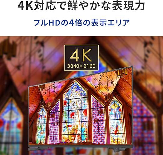 【4K対応でフルHDの4倍の表示エリアで鮮やかな表現力】フルHDの4倍の表示エリアの4K UHD(3840×2160ピクセル)に対応!映像の細部までをよりリアルに鮮明に表示できます。4倍の情報を表示できるので、オフィスの会議室でより多くの情報を一度に表示し、効率的な会議を行うことができます。