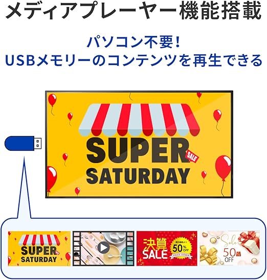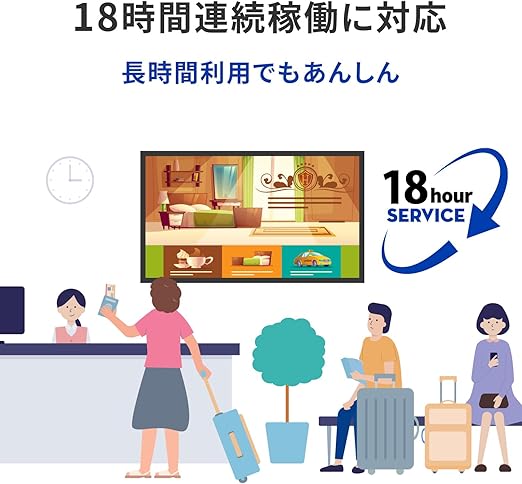 【18時間連続稼働に対応!】18時間連続稼働に対応しているので、長時間稼働が必要となる、商業施設や小売店舗、宿泊施設などでのデジタルサイネージで安心してご利用いただけます。