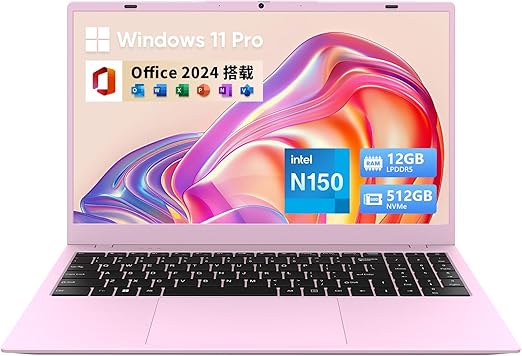 UOWAMOUノートパソコン 15.6インチ 12世代N150初登場【N100とN95より速い】ノートPC Office2024搭載 軽量 12+512GB SSD Windows 11Pro Laptop フルHD1920*1080 16:9 IPS広視野角 Webカメラ/Wi-Fi 6 BT5.2 USB 3.0 USB 2.0 Type-C 最大3.6 GHz 学生向け 純正桜色 a