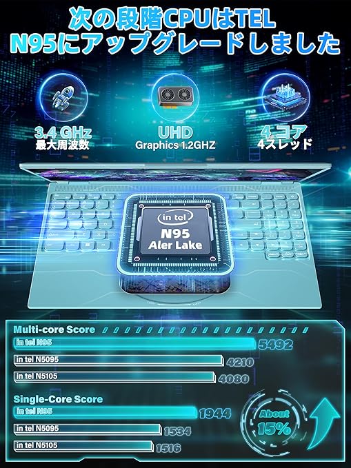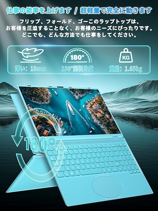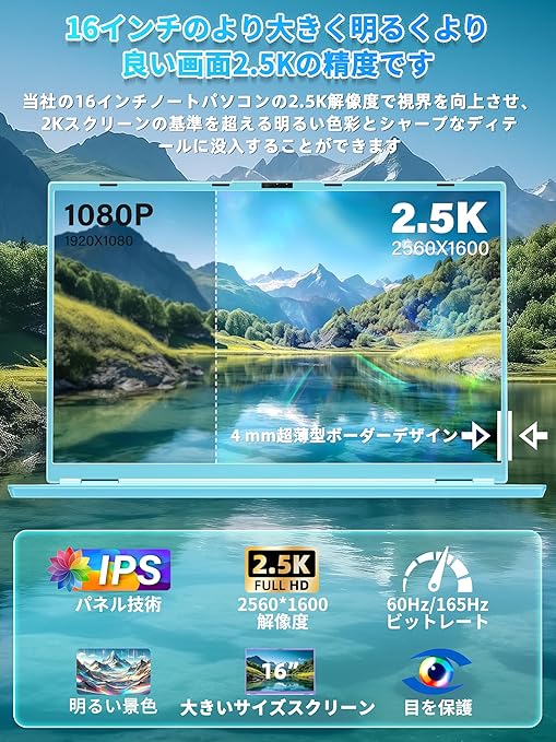 ノートパソコン【MS Office 2019/Win 11Pro】16インチ2.5K FHD(2560x1600) IPS 高速静音CPU Celeron N95 1.7~3.4Ghz/メモリ:DDR4 16GB USB 3.0*2/mini-HDMI/SSD拡張 Webカメラ付き/顔認証/7色のバックライト付きキーボード マウス付き (高速SSD:16+960,グリーン)… `