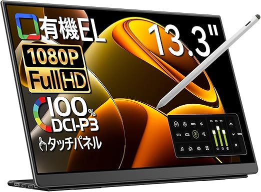 EHOMEWEI モバイルモニター 有機EL タッチパネル 13.3インチ FHD 1920x1080 タッチペン対応 【Windows/MacOS】対応 光沢 ペンタブ 100% DCI-P3 薄型 5mm ゲーミング ブルーライトカット 保護フィルム ケース付 メーカー3年保証 LO-133PF a | PCBASE
