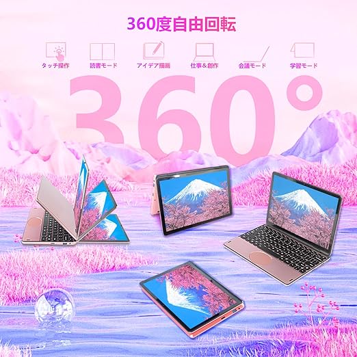 2in1 ノートパソコン ピンク10.95インチタッチパネル YOGA360°回転可能 n100 ノートpc 軽量/1920x1200 100%sRGB/16GB DDR4/わずか942g 200万web カメラ画素/bluetooth 4.2/Type-C(データ転送専用)/初期設定不要 Windows 11 Pro搭載 日本語配列キーボードカバー付き (ピンク, 16GB+256GB) a