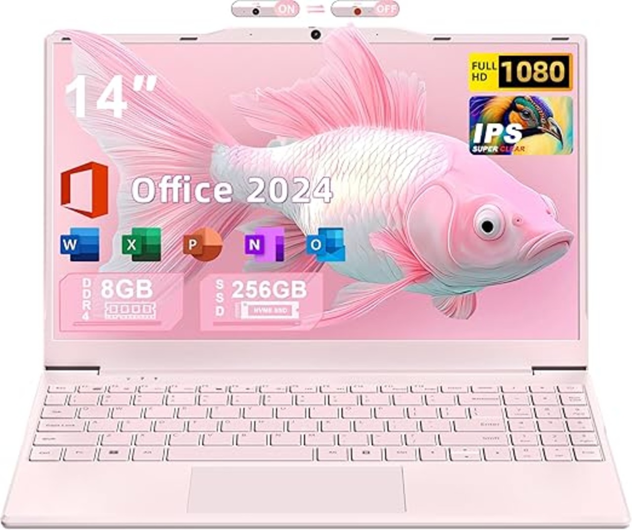 2025 14インチ テンキーパッド付きノートパソコン win 11 pro/office 2024 Celeron N5095、8 GB Ram(最大64GB拡張) 256GB Nvme SSD 1080P FHDディスプレイ 薄型 180°ヒンジ/Wifi/Bluetooth仕事/勉強 ピンク a | PCBASE