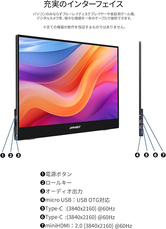 JAPANNEXT 15.6インチ モバイルモニター IPS パネル 4K UHD 3840x2160解像度 (USB/Type C/MAC PC対応/スピーカー内蔵 / sRGB100% / 光沢) JN-MD-IPST156U a | PCBASE