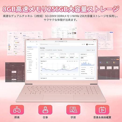 ノートパソコン 14.1インチ office 2019搭載|N5095 4コア/4スレッド/デュアルメモリ 8GB/256GB M.2 SSD|学生&初心者向け|軽量ノートPC サクサク動作|W11 Pro/USB3.0/BT4.2/Wi-Fi5|日本語キーボードカバー付き ピンク a | PCBASE