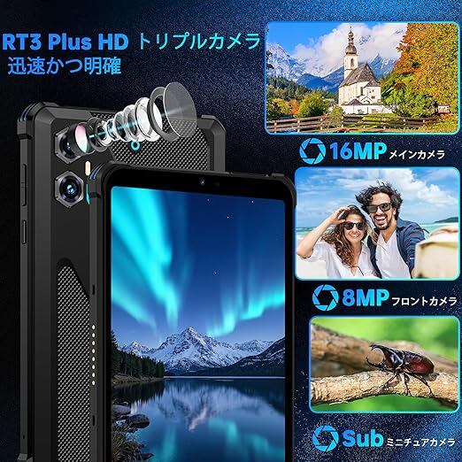 【Android 15&8インチタブレット&滑り止めリストストラップ】OUKITEL RT3 Plus 防水タブレットは、解像度800x1280の8インチHD IPSディスプレイを搭載し、鮮明で繊細な映像をお楽しみいただけます。本体の厚さはわずか16.3mmで、コンパクトかつ軽量なので、バックパックに入れて持ち運びも簡単です。登山やサイクリングなどの激しい運動中にデバイスが誤って滑り落ちるのを防ぐリストストラップも付属しています。Android 15オペレーティングシステムはユーザーのプライバシ