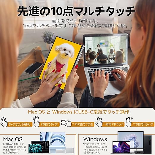 Intehill モバイルモニター 4K+ 13.4 インチ タッチパネル IGZO ノングレア 護眼 超高精細338PPI(3840x2400)16:10黄金比 500ニット 超軽量 モバイルモニター アルミ 筐体 1500:1 sRGB100% HDR対応 VESA デュアルUSB-C/HDMI 対応 保護カバー付き (U13ZT) a | PCBASE