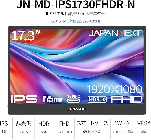 JAPANNEXT 17.3インチ モバイルモニター IPS パネル フルHD 1920x1080解像度 スマートケース付き (Type C/PC対応/スピーカー内蔵 / sRGB100% / 非光沢) JN-MD-IPS1730FHDR-N a | PCBASE