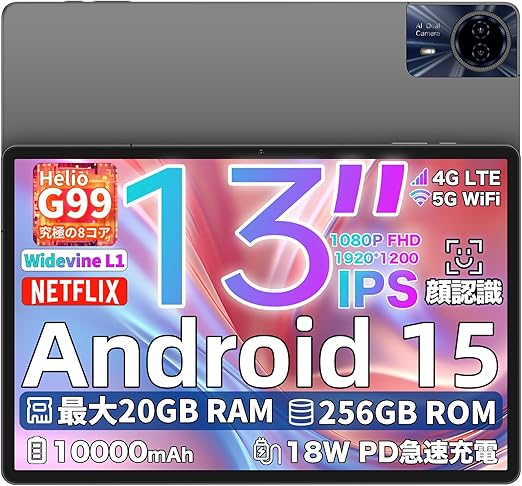 Android 15 タブレット 13インチ TECLAST T65 Max Helio G99 タブレット Widevine L1 対応、20GB+256GB+1TB拡張、10000mAh+PD18W急速充電、4G通話対応 SIMフリー、8コアCPU 2.2Ghz、1920x1200 FHD画面、BT5.2+5G WiFi+GPS+顔認識+GMS+OTG、ゲーミングタブレット a | PCBASE
