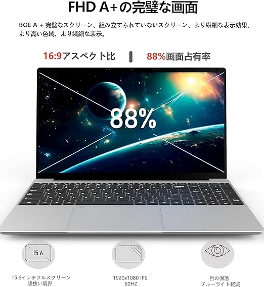 [15.6インチ A+高品質スクリーン] このノートパソコンは、明るい色と鮮明な表示を備えた1920 * 1080Pの高品質スクリーンを採用しています。ブルーライトによる目へのダメージを軽減します。長時間のコンピュータ使用による目の疲れを軽減します。