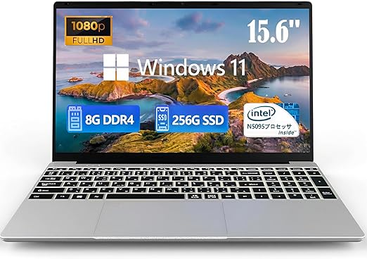 ノートパソコン、15.6インチLaptops 1080P IPSスクリーン、N5095プロセッサ4C 4T最大2.9GHz、8GB RAM 256GB SSD、指紋認証バックライトキーボード付きWindowsノートパソコン、WiFi、USB 3.0、ウェブカメラ、HDMI a | PCBASE