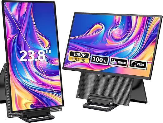 【超大型23.8インチモバイルモニター】この23.8インチHDディスプレイ、自立スタンド付き、より大きな画面でさらに優れた視野角を実現します。IPS 1080P解像度、100Hz、HDRモード、豊かな色彩表現により、最高の視聴体験を提供します。豊富な端子があった、明るさ、ボリューム、コントラストなどを個別に調整できます。画面の回転角度は90度自由に調整でき、いつでも最適な視聴角度を選んで、場所を選ばず、視覚と音響のデュアル体験を存分にお楽しみいただけます。