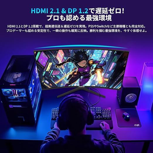 Amzfast 32インチ ゲーミングモニター WQHD(2560×1440)/180Hz/VAパネル/1500R曲面/1ms OD/3500:1 コントラスト/Adaptive Sync/フリッカー防止/低ブルーライト/DCI-P3 90%色域/sRGB120%/HDR/75x75 VESA/5年保証 AMZG32C3Q a | PCBASE