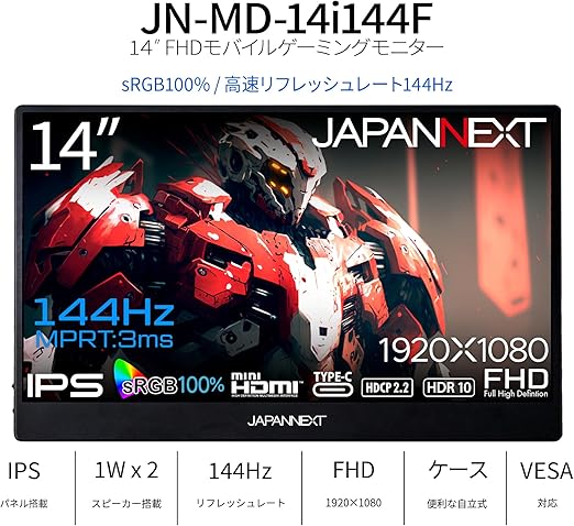 JAPANNEXT 14インチ モバイルモニター IPS パネル フルHD 1920x1080解像度 スマートケース付き (USB/Type C/MAC PC対応/スピーカー内蔵 / sRGB100% / 非光沢) JN-MD-14i144F a | PCBASE