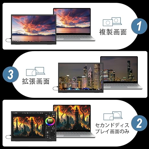 【画面比率は3:2です】モバイルモニタはサブモニターとして、 3:2の画面は通常のワイド15.6インチよりも大きいです。2160PフルHDポータブルモニターは高品質な画質を持ち、500nit輝度、100%sRGB、178度の広視野角は、見る位置や角度による歪みや色ずれを最小限に抑え、どの角度から見ても美しい映像をお楽しみいただけます。注:お使いのコンピュータが3:2の比率を表示できる場合を除き、表示比率はお使いのコンピュータの比率に従うしかありません。