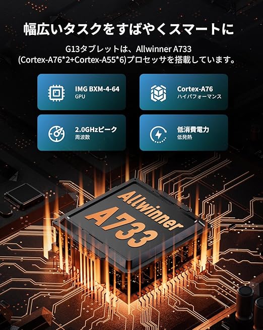 【先端OS:Android 15&デスクトップモード】最新のAndroid 15を搭載したこのG13タブレットは、高速化されたメモリ管理によりアプリ起動が40%向上し、マルチタスクもスムーズ。適応型バッテリーで駆動時間を25%延長し、大画面ならではの高精細な表示も魅力です。ワンタッチで「デスクトップモード」に切り替え可能。外付けキーボードやマウスと接続すれば、本格的なデスクトップ環境に早変わりします。Office作業やWeb会議もストレスフリーで、外出先でもオフィスさながらの作業効率を実現。