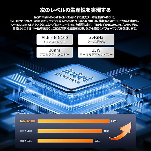 【第12世代Core-N100・Windows11 ミニPC登場】 LarkboX X2023は最新の第12世代のインテルの-N100(最大周波数3.4GHz、4C/4T、6MBキャ