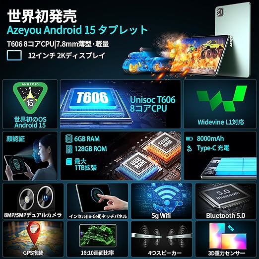 【Android 15 タブレット11インチ初登場】Azeyou 11インチ タブレットは最新Android15 OSを搭載し、大規模なAPPアプリケーションとより多くのメモリ実行じをサポートし、APPの起動と応答速度を大幅に向上しています、64ビット時代に向けた重大なアップデートとして。Android15 OSをベースにして、弊社二次開発を行って、システム性能の向上に加え、AIとの深い融合も実現し、お客様によりスマートな体験を提供しています。アンドロイド15タブレットGMS認証も取得したため、