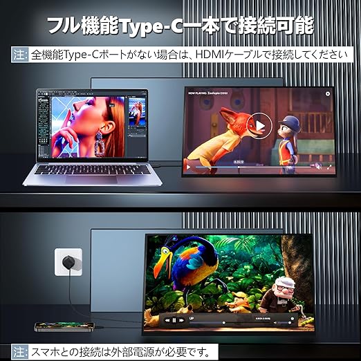 【超薄・軽量で持ち運び便利】厚さわずか0.3インチ、重量約2.4ポンドのスリム設計で、バッグに簡単収納。出張、カフェ、ホテル、キャンプなど、どこでもデュアルモニター環境を実現。仕事や映画鑑賞、ゲームにも最適です