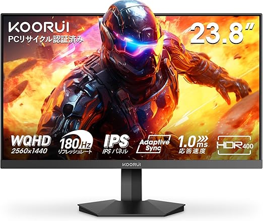 KOORUI ゲーミングモニター 24インチ WQHD (2560x1440) 180Hz 1ms (GTG) Fast IPSパネル Adaptive Sync対応/DCI-P3 90%/HDR400/ HDMI×2/DP ブルーライト低減 VESAマウント対応 G2421V a | PCBASE