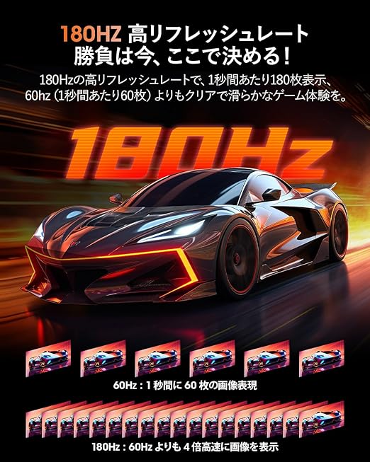 【180Hz高リフレッシュレート&1ms(GTG)高速応答】180Hzの高リフレッシュレートと1ms(GTG)の高速応答を実現し、FPSやレーシングゲームでのカクつきや遅延を大幅に軽減。滑らかな画面遷移で、一瞬の判断も逃しません。ゲームでも仕事でも、圧倒的な快適さを体感できます。