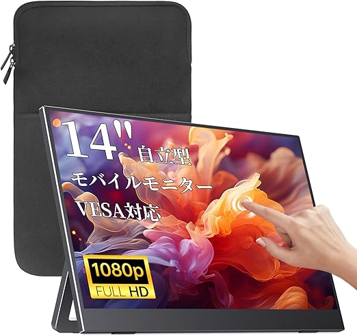 【Amazon限定ブランド】VisionOwl モバイルモニター 14インチ タッチパネル 超薄型 超軽量600g 自立型 収納ケース付 スリムベゼル 非光沢IPSパネル FHD1920*1080 PS4/XBOX/Switch/PC/Macなど対応 モバイルディスプレイ ポータブルモニター MD-14T a | PCBASE