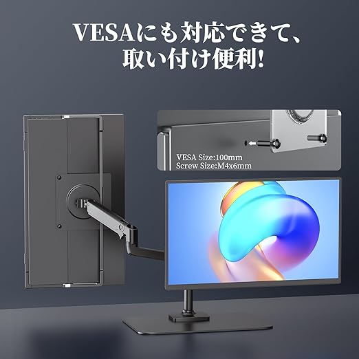 【自立スタンド付き・VESA対応】自立スタンド付きで、0°~175°の範囲内に自由調整可能!固定力十分だから、「大角度なら倒れるかも?」って心配もなく!そのうえ、底部の滑り止めゴムは四つも!自体はもう十分安定なのに、VESAまで対応可能!安定感重視ならまさにこの品一択しかないと言えるだろう!