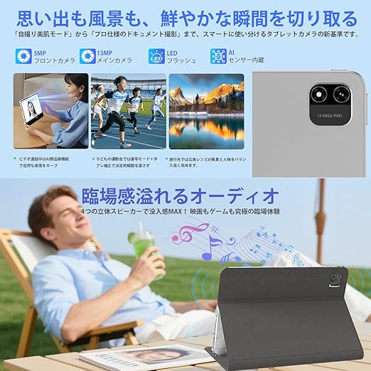 【2K高解像度&12インチ大画面&Widevine L1認証】Azeyou Android タブレットは12インチの大型Incell IPSディスプレイを搭載、2000×1200のフルHD解像度と16:10の最適ディスプレイ比率が鮮明さと電力効率の完璧なバランスも実現し、リアルな視覚体験を提供します。4つのスピーカーから響く立体音響で、動画鑑賞や音楽再生時に没入感が倍増します。Widevine L1認証を取得しているため、Amazon Prime Video、Netflix、Disney+、Hu