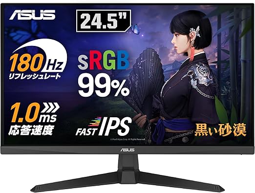 ASUS ゲーミングモニター TUF Gaming VG259Q3A 24.5インチ フルHD (1920 x 1080)/180Hz/Fast IPS/ELMB/ 1ms (GTG)/FreeSync/可変オーバードライブ/sRGB 99%/3年保証 / 国内正規品 a | PCBASE