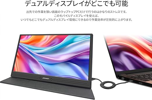 約800gの軽量設計と12mmの薄型本体により、携帯性に優れています。ワーケーションや外出先、自宅のリビングなど、大型ディスプレイを置くスペースが限られた場所でも、マルチディスプレイ環境を手軽に実現できます。高精細な画面で写真を表示したり、プレゼン画面をお客様に見せる、外出先でゲームを大画面で