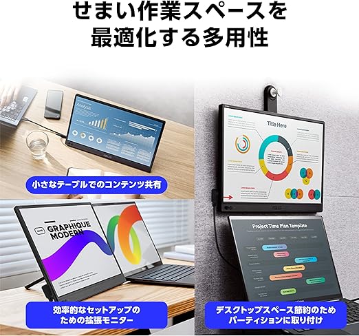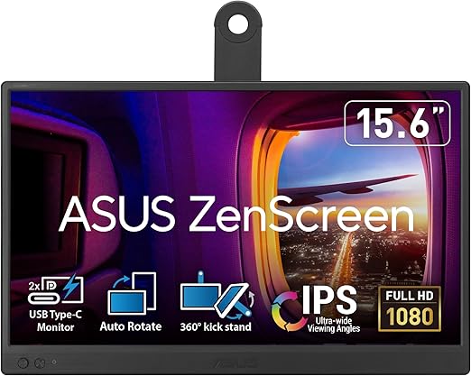 ASUS ポータブルモニター/ZenScreen MB169CK-J/ポータブルUSBモニター -15.6インチ / フルHD/IPS/デュアルUSB Type-C/フリッカーフリー/ブルーライト軽減機能/ノングレアパネル / 360°回転のキックスタンド/国内正規品 a | PCBASE
