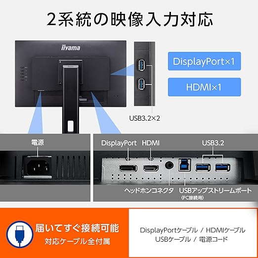 iiyama モニター ディスプレイ XUB2492HSU-B6 23.8インチ フルHD IPS方式 高さ調整 角度調整 縦回転 HDMI DisplayPort USBハブ 全ケーブル付 3年保証 国内サポート a | PCBASE