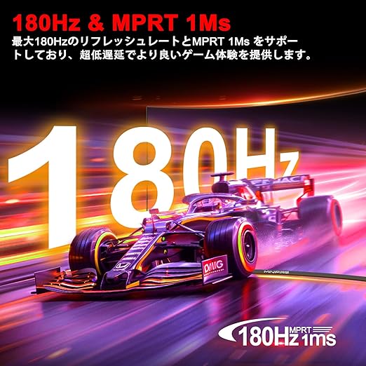 2、[リフレッシュレート] 180Hz[応答速度] 10ms (OD 3ms/MPRT 1ms)、[傾斜角度調整] 前後(-5°から15°+/-2°)、178°広視野、アイケア、ブルーライト軽