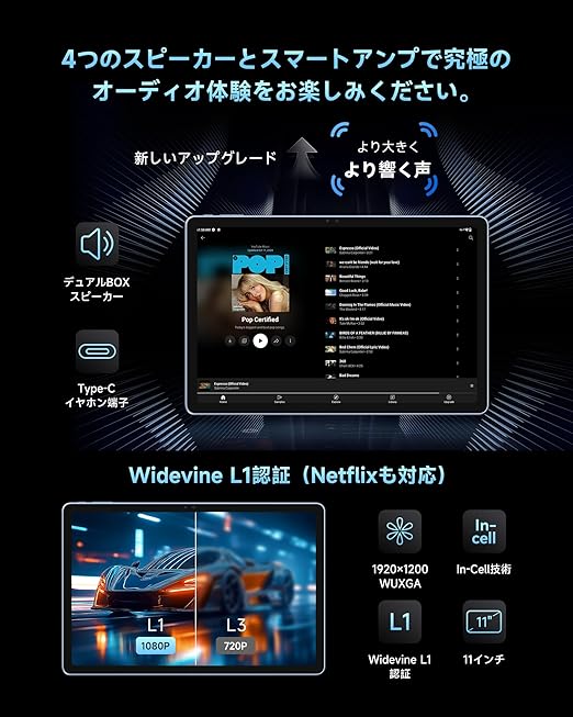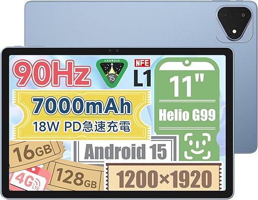 ALLDOCUBE iPlay60 Pro Android 15 タブレット11インチ 90Hz高リフレッシュレート 顔認識 クアッドスピーカー 8コアCPU Helio G99 タブレット WidevineL1 Netflix対応 1200×1920 WUXGA解像度 16GB+128GB+1TB拡張 7000mAh 18W PD急速充電 4G LTE GPS -ブルー a | PCBASE