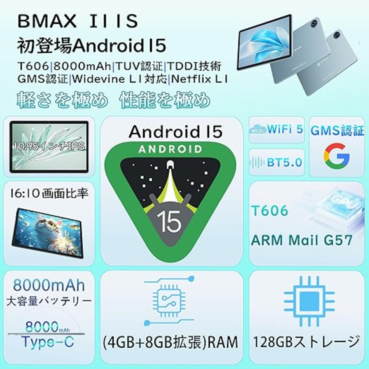 【BMAX Android 15 初登場】bmax I11S アンドロイド 15 タブレット 11インチ、12GB+128GB+1TB拡張、8コアCPU T606 、Widevine L1 Netflix対応+8000mAh+11インチタブレット WiFiモデル+Type-C充電+5G WIFI ゲーミングタブレット+GPS+顔認識+BT5.0+OTG a | PCBASE